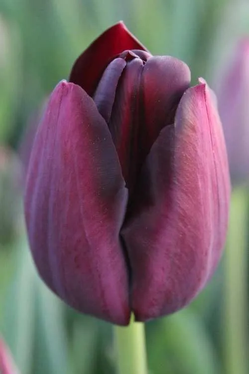 Our darkest tulip- deep velvet maroon. Offers great contrast to yellows, pinks and whites. Introduced in 1940.